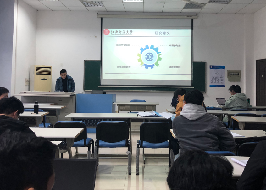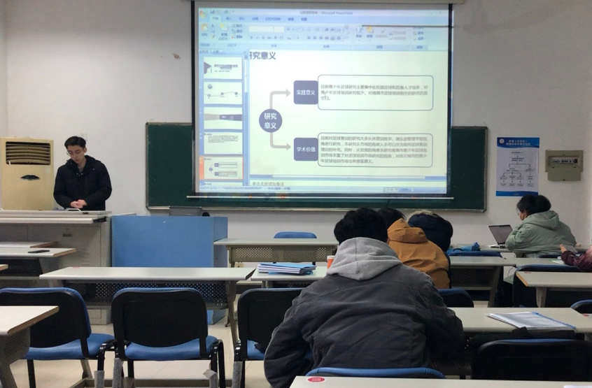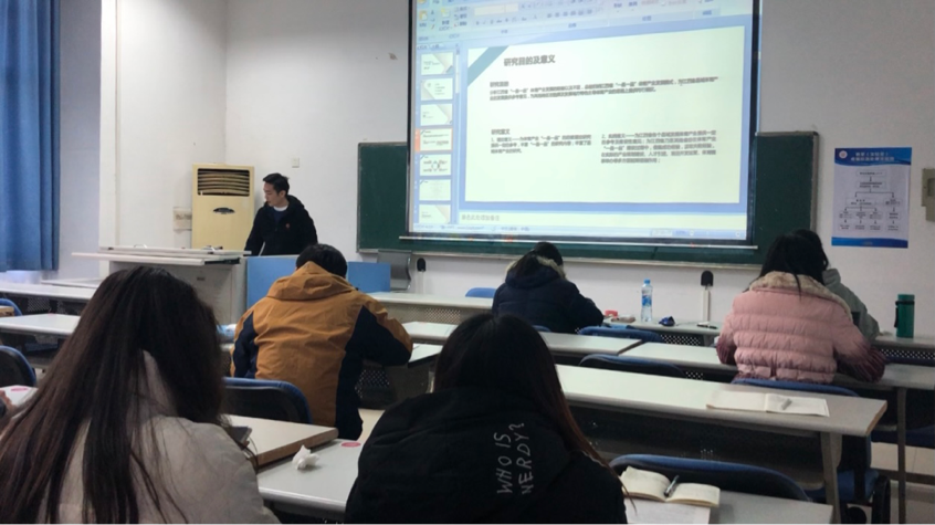 研究生们首先依照论文框架展示论文内容,对论文的选题意义、目的以及研究方法等进行介绍,着重在研究内容与结论。
